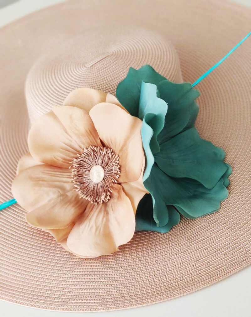 Para elaborar las pamelas de invitada en Barajas, utilizamos tejidos especiales, adornos artesanales, flores preservadas, plumas y elementos cuidadosamente combinados. Las pamelas para invitada en Madrid se diseñan para aportar textura, movimiento y equilibrio al look, respetando siempre la armonía del conjunto y la personalidad de la invitada.